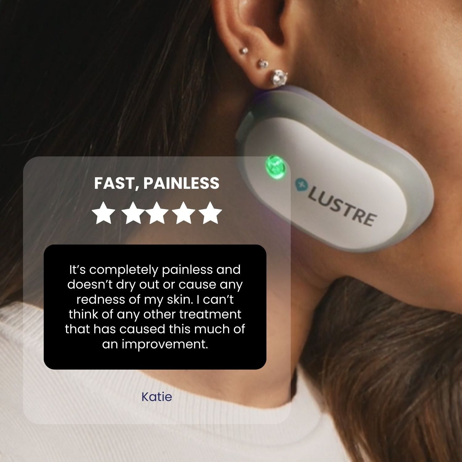 Ideal for widespread acne, use TRIO to target multiple areas of the face or body at the same time. LUSTRE TRIO works from day 1, with visible results after 2 weeks of daily use.