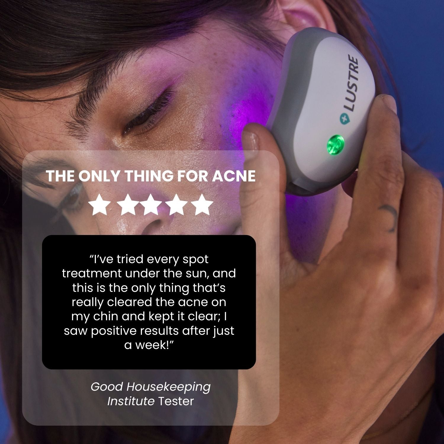 LUSTRE TRIO includes three of our clinically proven pure blue light SOLO devices in one box to eliminate mild to moderate acne - safely, gently and with no side effects.